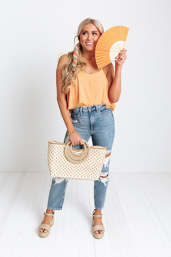 Your style is sure to be a conversation starter when you arrive in our flirty orange 'All The Drama' bodysuit featuring lightweight material with a fringe trim overlay bodice, a scooped neckline, adjustable spaghetti straps with a low v-cut back, and a flattering silhouette that ends in snap closure bottoms!