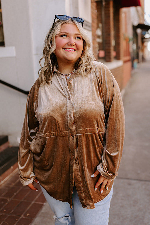 Apple Cider Sips Velvet Top In Iced Mocha Curves