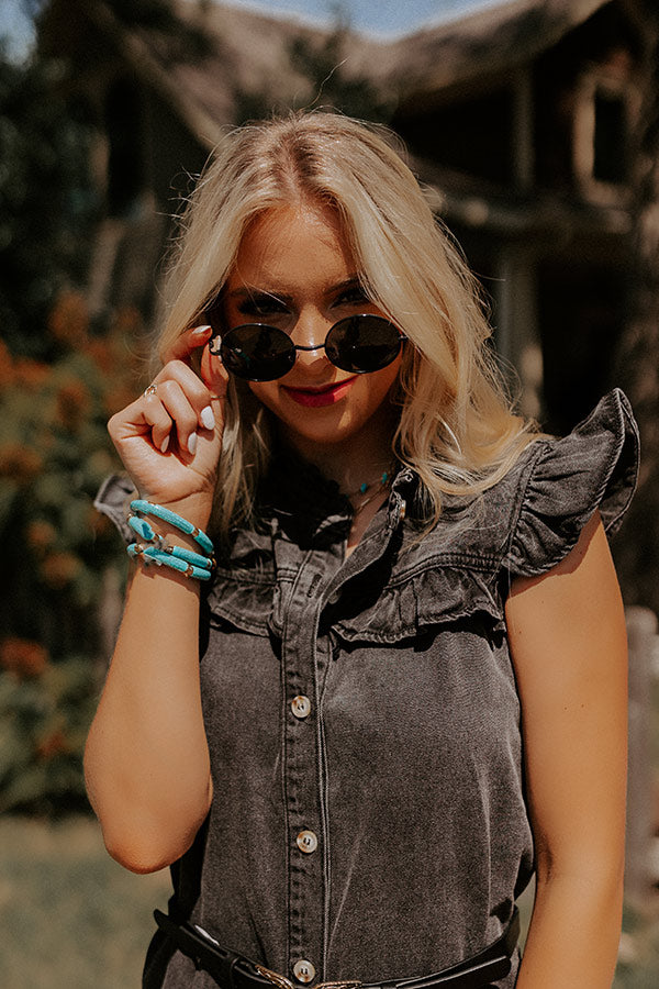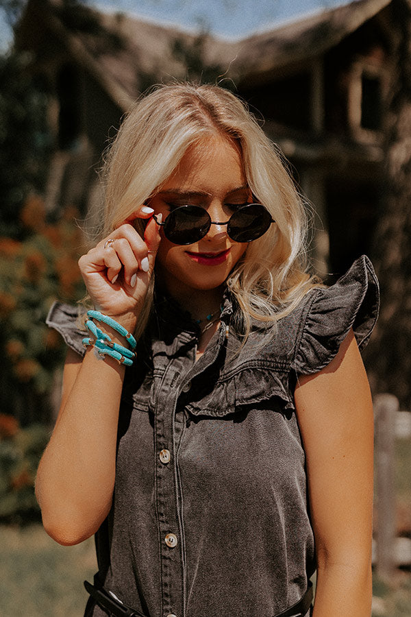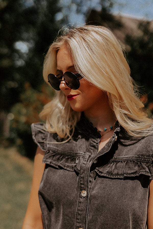 Add a groovy addition to your look with our cute 'Around We Go Sunnies' featuring black circle frames with dark tinted lenses!