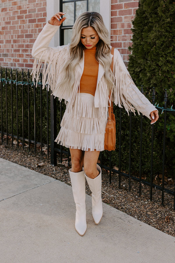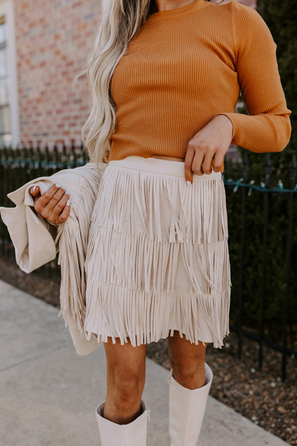 Boho Flow Faux Suede Fringe Skirt in Cream