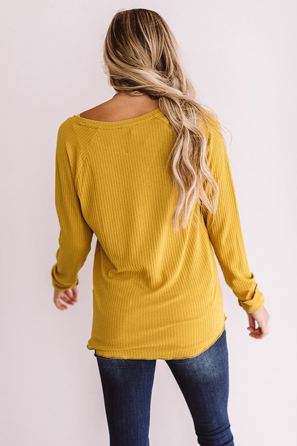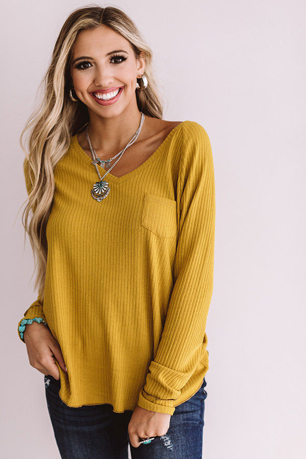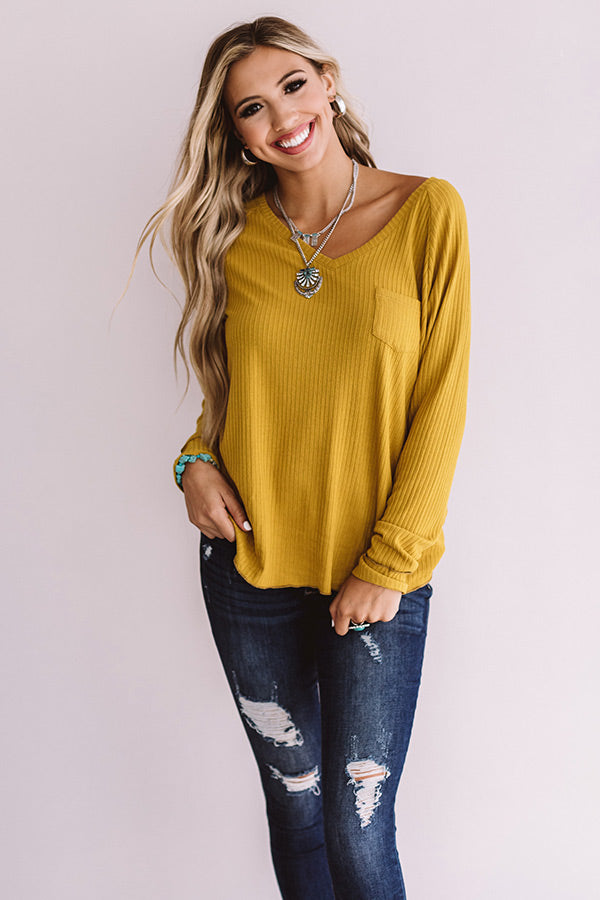 There is no better way to stay warm and cozy in the fall than with the "Canyon Ridge" mustard top featuring ribbed texturing, a front accent pocket, long sleeves with cuffed wrists, a v-neck, and a shift bodice with a rounded hem! This casual piece styles perfectly with distressed skinnies, "The First Snowfall Knit Cardigan in Black," "The Posey Bootie in Black," and our "Vintage Vibes Felt Hat in Black" for the perfect wear-anywhere autumn look! Measurements S variant has a Bust of 38", a Hip of 40", a Length of 26", a Sleeve Length of 28", a Waist of 37". M variant has a Bust of 40", a Hip of 42", a Length of 26.5", a Sleeve Length of 28", a Waist of 39". L variant has a Bust of 42", a Hip of 44", a Length of 27", a Sleeve Length of 28", a Waist of 41".