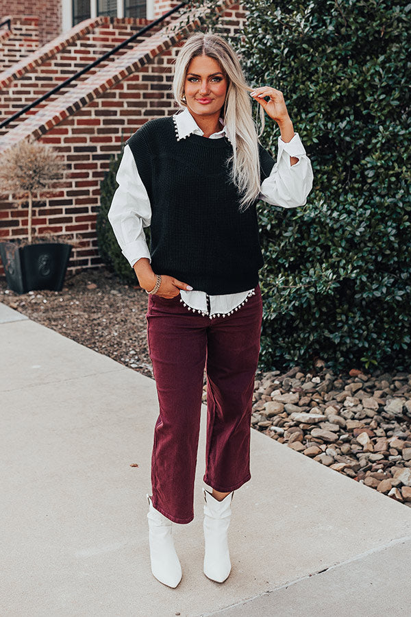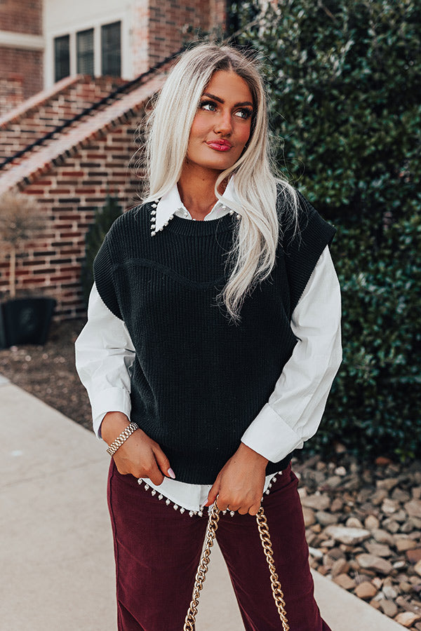 The cat's out of the bag...our fave new winter layering piece just dropped! This black top features soft knit material, a rounded neckline, wide shoulders, and a relaxed silhouette that falls into a straight hemline!