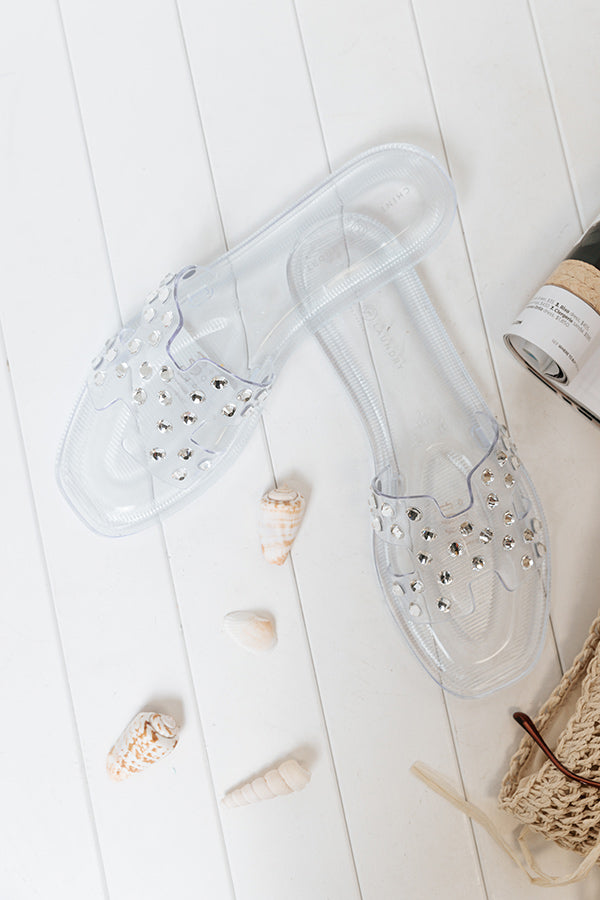 Heads up...the perfect summer shoe just dropped! Our fun clear 'Charli Jelly Sandal' features a wide over-the-foot strap with rhinestone stud detailing, a rounded open toe, a flat sole, and a lightweight slip-on silhouette! These sandals run more true to size.
