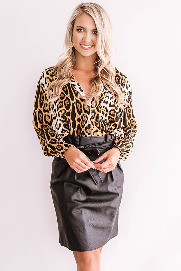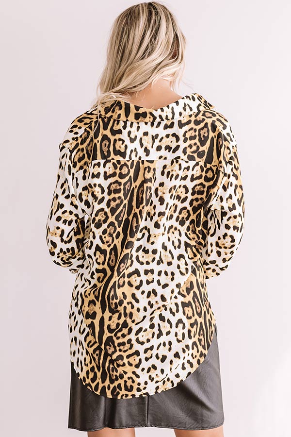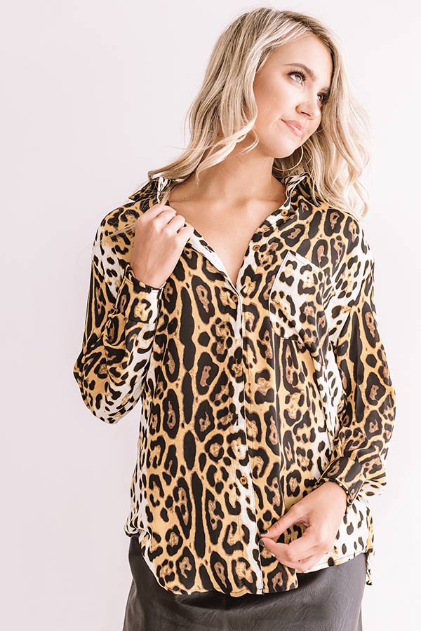 Cider In Aspen Button Up Top In Leopard Print