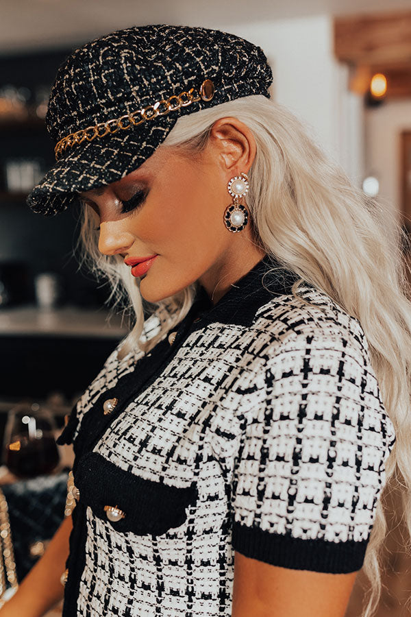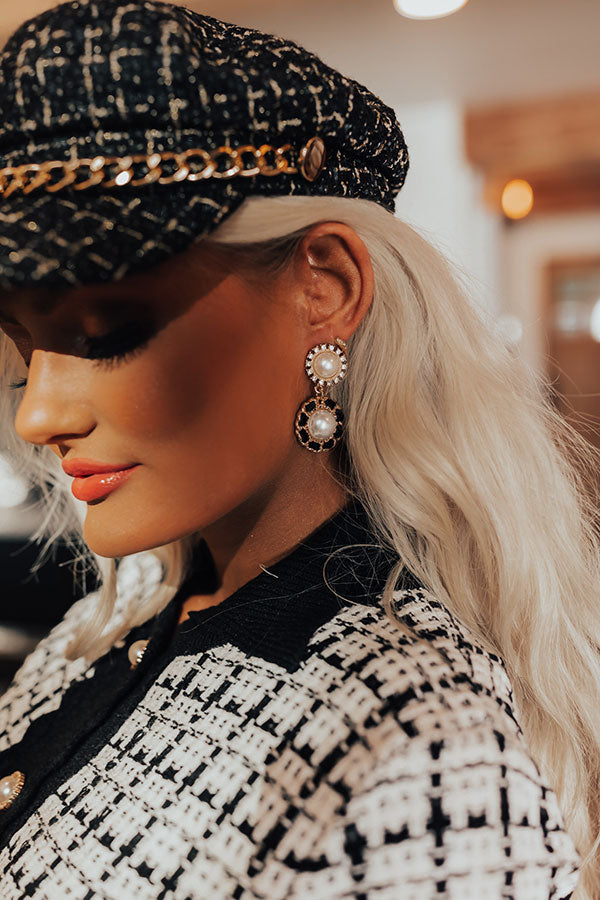 Look stunning in the 'Cider Toasting' earrings! Features trendy black and gold round drop style with rhinestone and pearl accents.