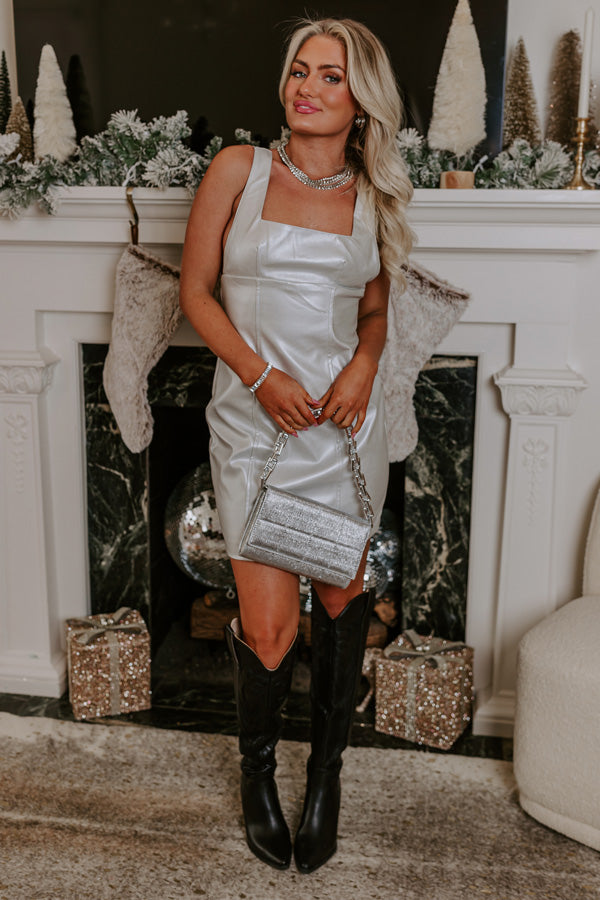 Cocktails And Cheers Faux Leather Mini Dress in Light Silver