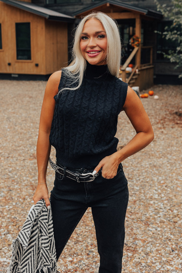 Cool Touch Knit Sweater Top in Black