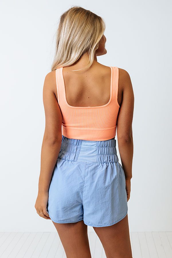 Upgrade your athleisure wear with our cute neon coral colored 'Doing The Most' top featuring lightweight four-way stretch material with subtle vertical ribbed texturing, a scooped neckline and upper back, 1-inch sleeveless shoulder straps, and a flattering figure hugging silhouette that ends in wide, straight cropped hemline! on products