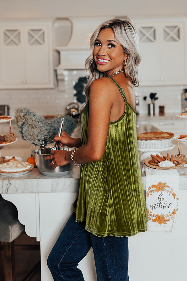 The perfect fall layering piece, our darling lime colored 'Finding Romance' tank features velvet material with ribbed texturing, an intricate lace v-cut neckline, adjustable spaghetti straps, and a relaxed silhouette that ends in a straight hemline!