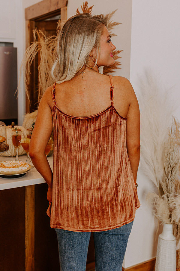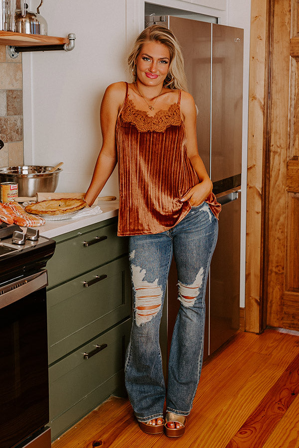 The perfect fall layering piece, our darling rust colored 'Finding Romance' tank features velvet material with ribbed texturing, an intricate lace v-cut neckline, adjustable spaghetti straps, and a relaxed silhouette that ends in a straight hemline!