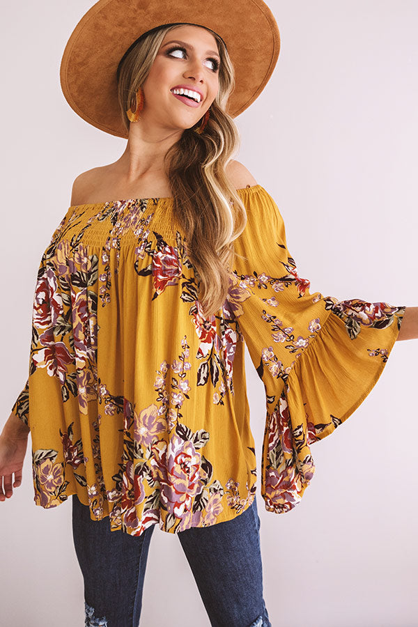 Floral Thrill Off Shoulder Top In Primrose Yellow