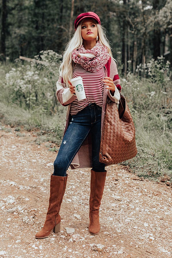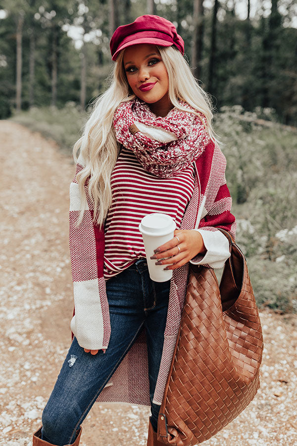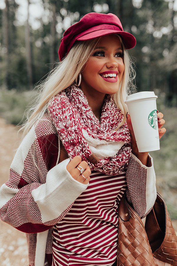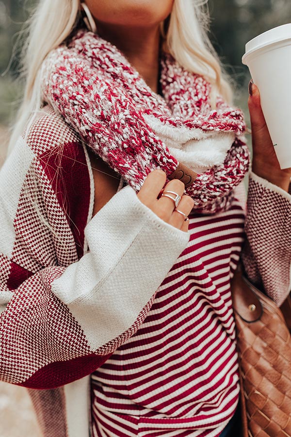 Full Of Warmth Popcorn Knit Infinity Scarf in Wine
