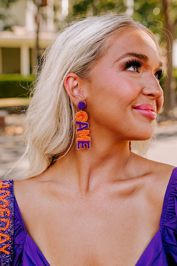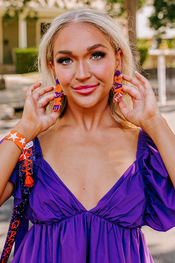 - Beaded earrings featuring studs and dangling beaded 'GAME DAY' and football design with gold and silver colored accents
