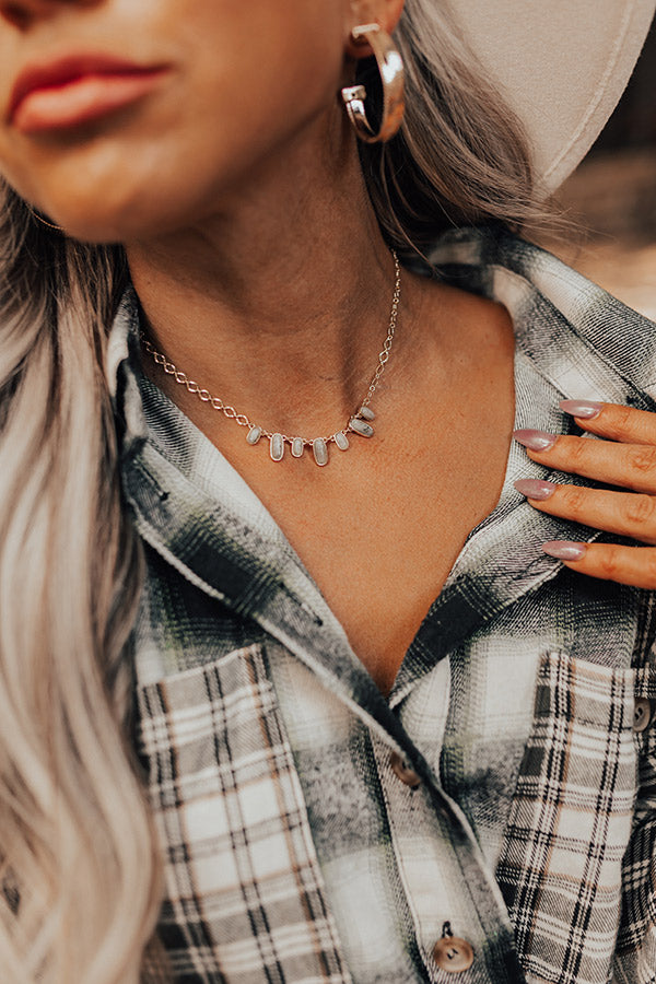 Add a subtle but significant accessory to your look with our pretty 'Garden Gate Necklace' featuring a delicate chain with stone hued accent faux stones!