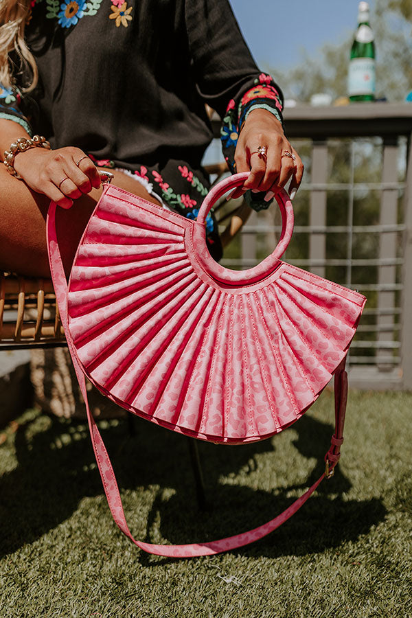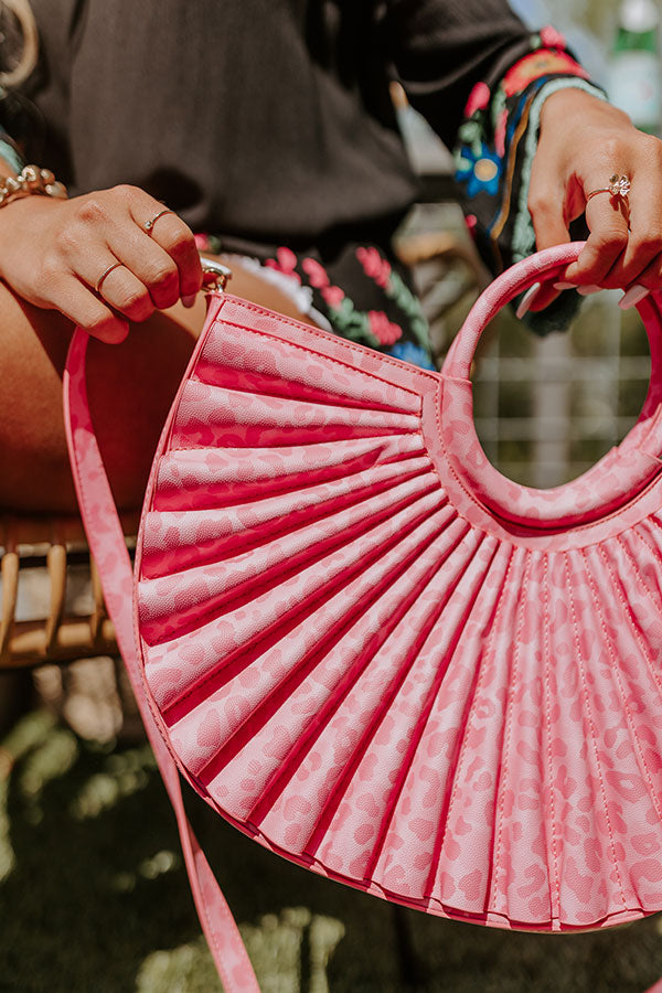 You are sure to look so chic when you complete your look with this pink tote featuring pleated faux leather material patterned with a subtle darker leopard print, two circle tote handles, a zip closure pouch on the back, a removable shoulder strap, and a spacious fully lined interior with a zip closure pouch!