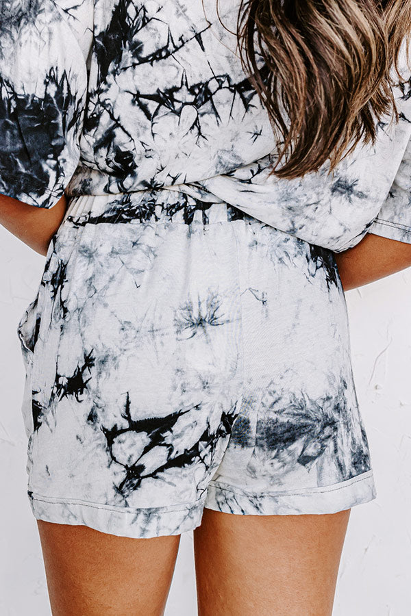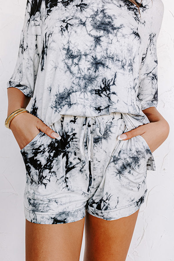 You will be "lounging in bliss" when you wear these trendy shorts featuring ultra soft lightweight material patterned with grey/black tie dye, an elastic waistline with a tie belt, accent side pockets, and a relaxed silhouette that falls into straight upper-thigh length hemlines! This comfy piece styles perfectly with our matching "Lounging In Bliss Tie Dye Shift Shift Tee in Grey," a scrunchie, and some fuzzy slippers for the ultimate two-piece lounge look!