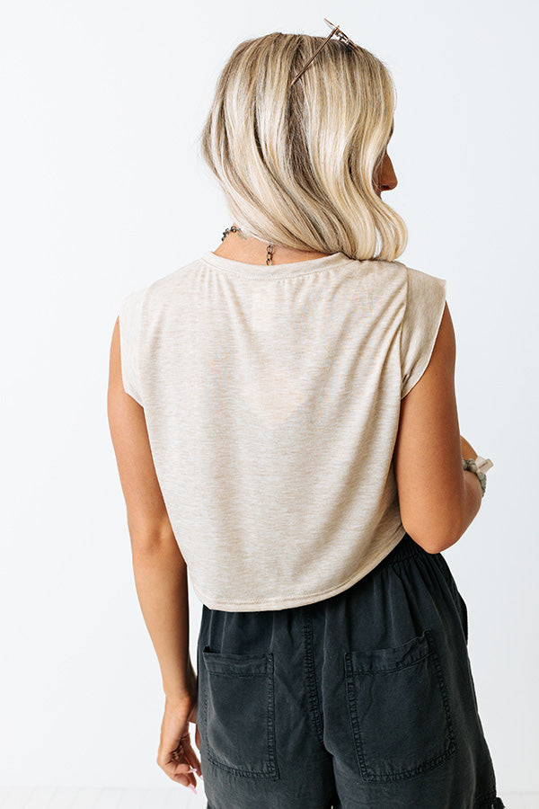 Keep casual in our cute beige colored 'Making Mischief' top featuring lightweight material, a rounded neckline, trendy cap sleeves, and a relaxed silhouette that ends in a straight cropped hemline!