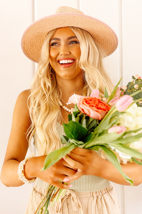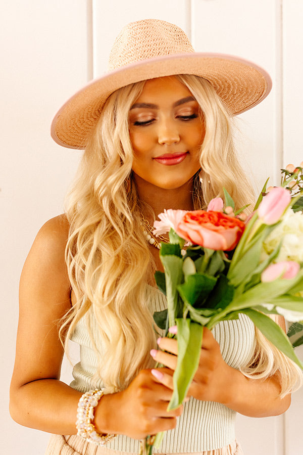 Perfect for outdoor occasions, our charming pink 'Picnic Please' hat features lightweight woven material, a 4-inch brim, and an accent ribbon!