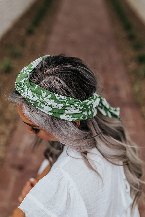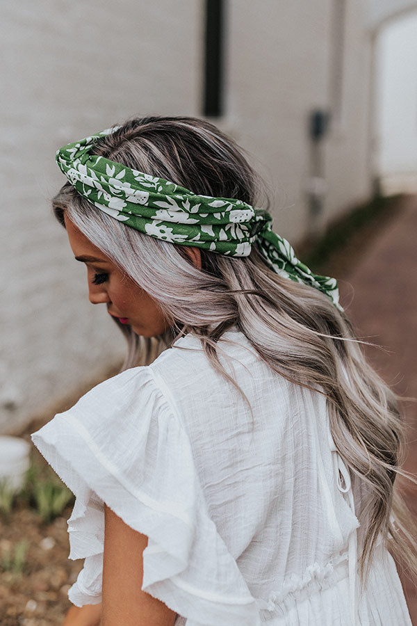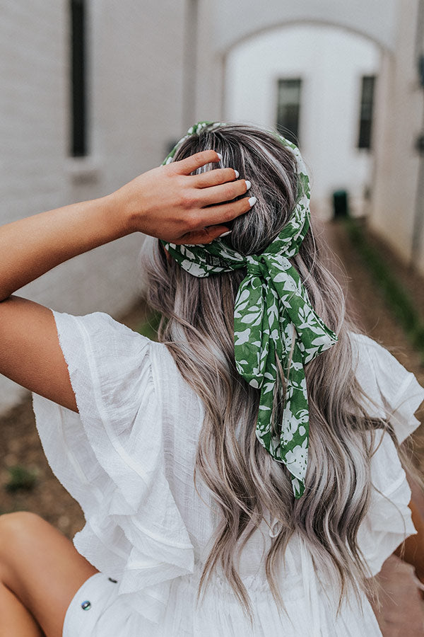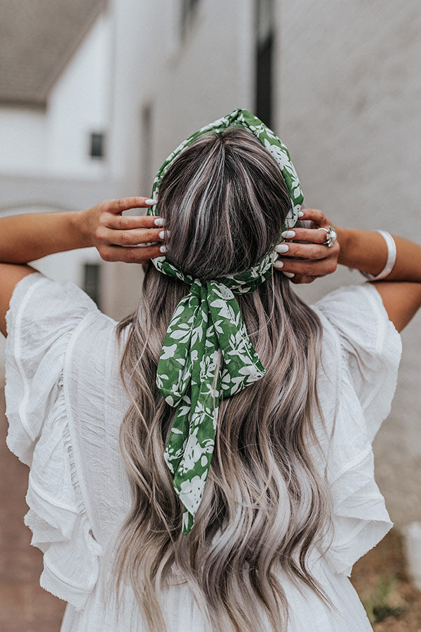 Your hair will thank your for styling it with this gorgeous green 'Precious Promises' hair scarf featuring lightweight material patterned with a white floral print!