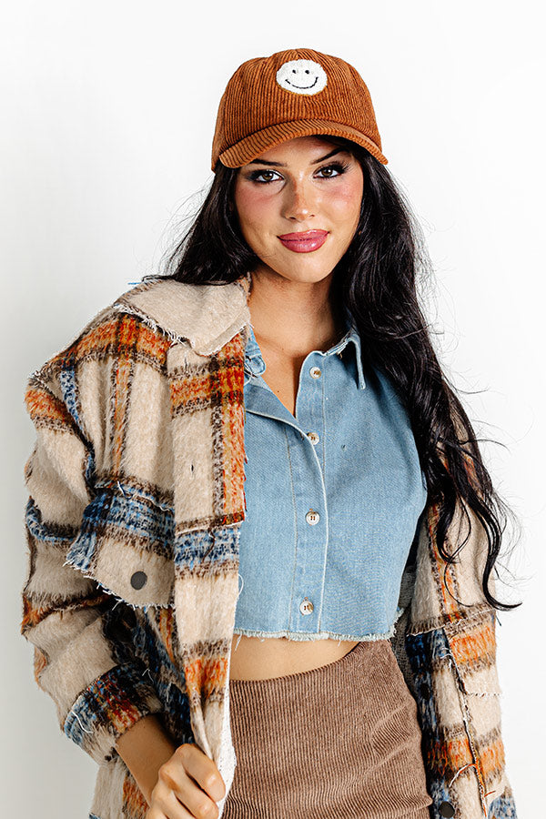 Remember To Smile Corduroy Baseball Cap in Brown