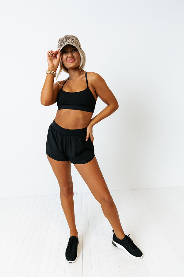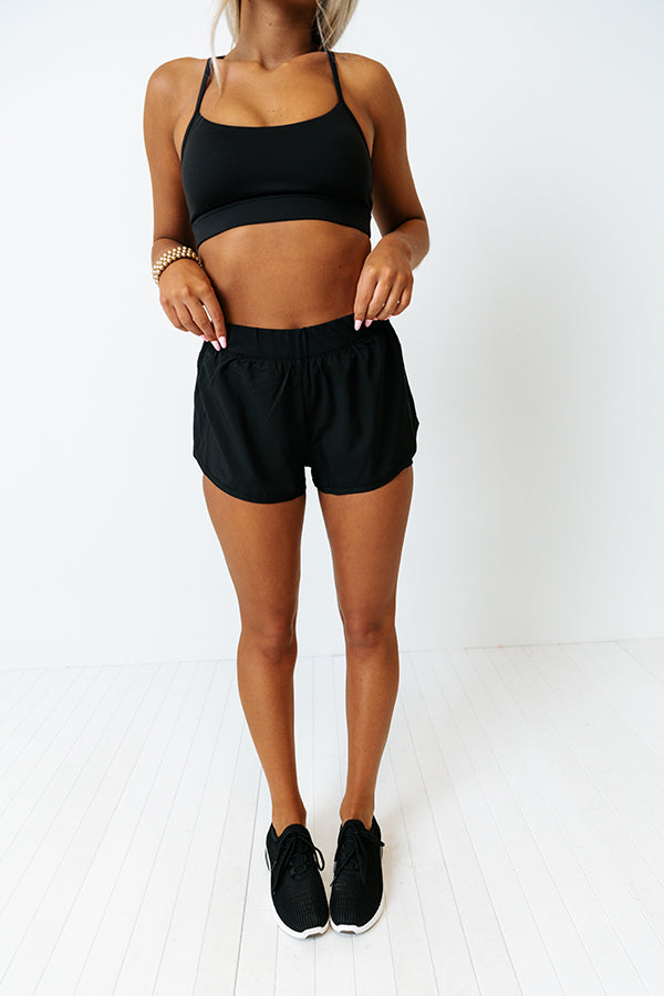 An athleisure essential, our simple black 'Running After You Shorts' feature sleek lightweight material, an elastic waistline, and a relaxed silhouette that ends in straight upper-thigh length hemlines!