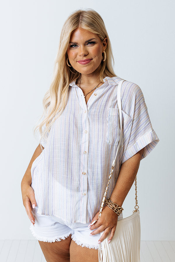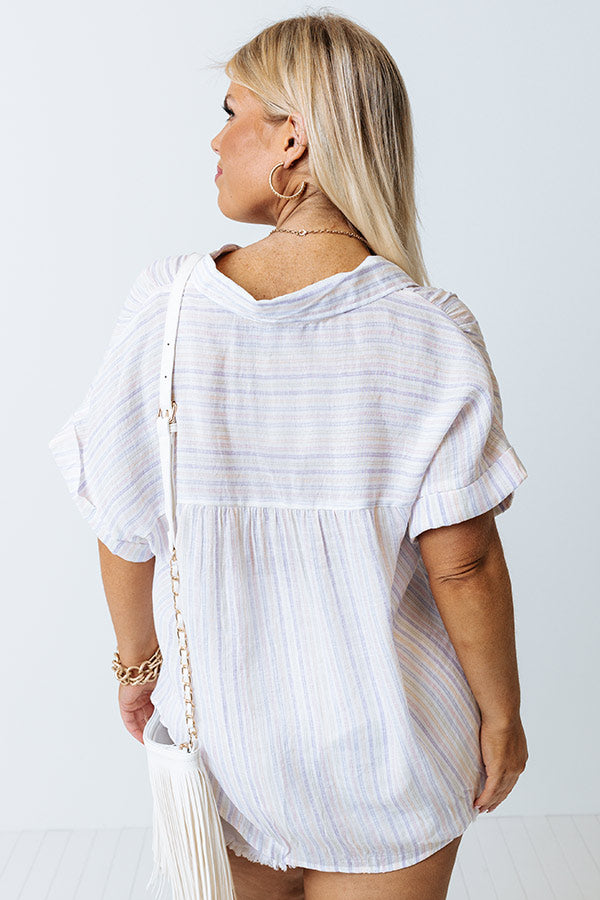 Saltwater Taffy Button Up Top In Lavender Curves