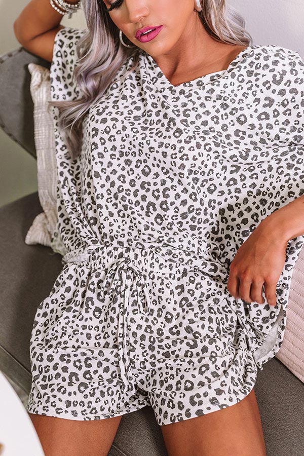 Nothing bring comfort to a gloomy day like a soft and comfy lounge piece! Our adorable white "Seaside Twist" shorts feature soft lightweight material patterned with a large black cheetah print, accent side pockets, an elastic waistband with a tie belt closure, and an ultra relaxed silhouette that falls into straight upper-thigh length hemlines! All you have to do is style it with our "Seaside Twist Cheetah Print Shift Top" and add some fuzzy slippers for the ultimate cozy two piece look!