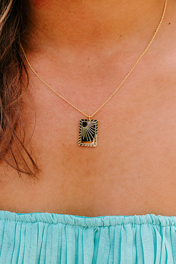 - 14 karat gold dipped necklace with a dainty chain and dangling sun charm
