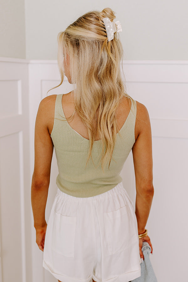 You are "shore" to love this versatile pear colored top featuring lightweight and comfortable material, a scooped v-cut neckline and upper back, 1-inch sleeveless shoulder straps, and a flattering figure hugging silhouette that ends in a straight cropped hemline!