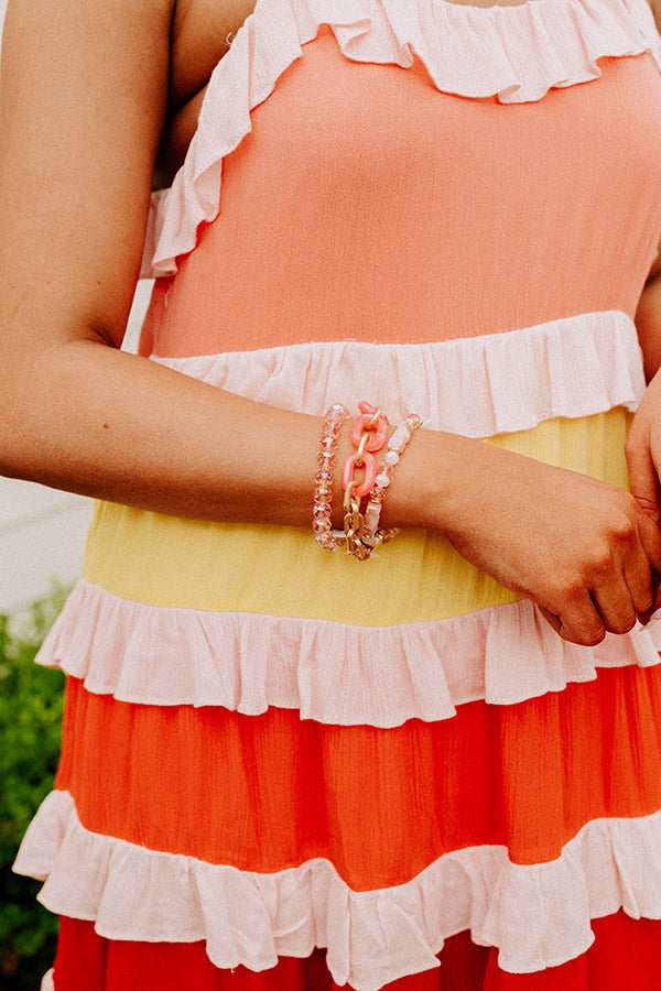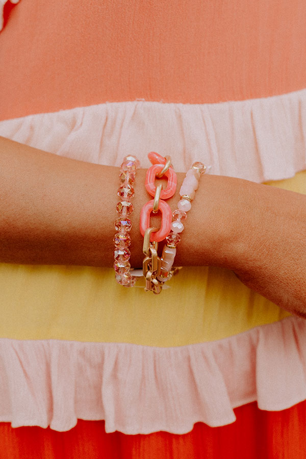 - A chunky matte gold toned chain link bracelet with accent stone links