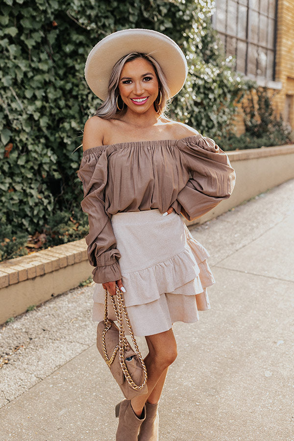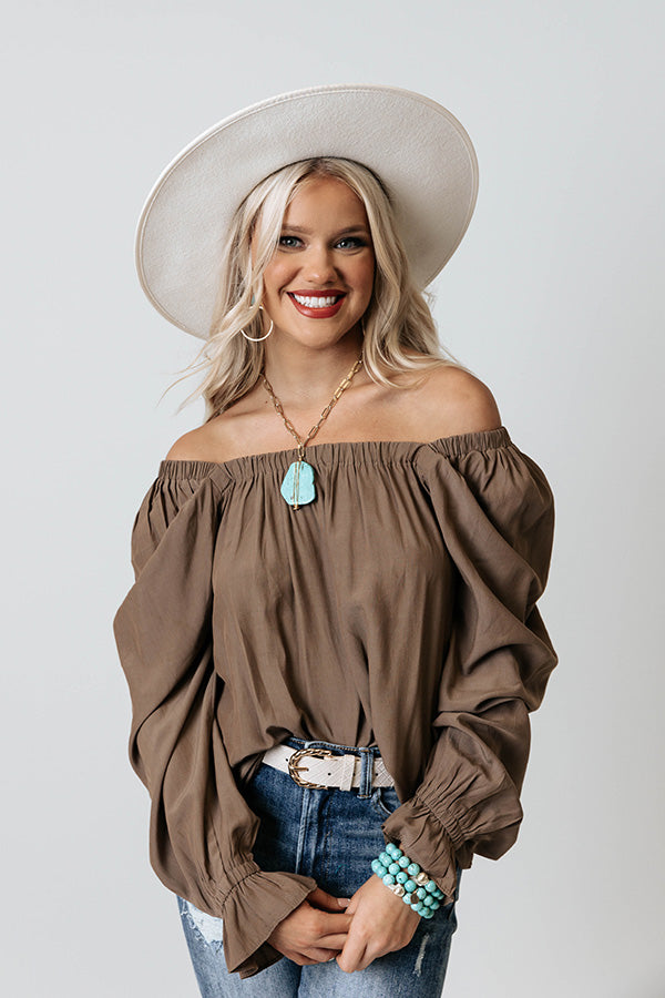 Arrive to the office looking like the professional you are with our versatile mocha colored 'Signature Move Shift Top' featuring lightweight material, a square neckline and upper back, long loose bishop sleeves with fitted cuffs, and a relaxed silhouette that falls into a straight hemline!