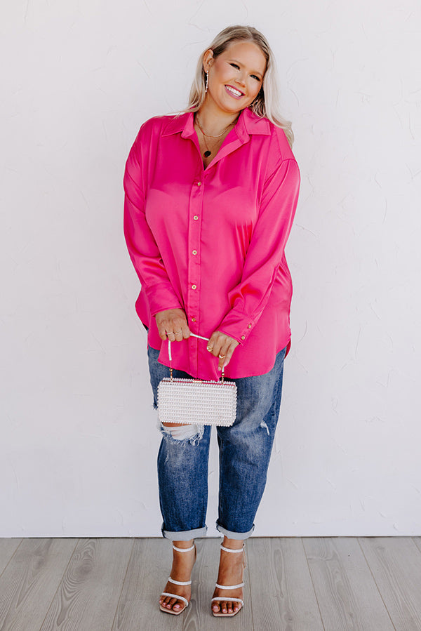 Simply Charmed Button Up Top In Hot Pink Curves