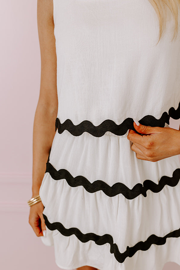- A figure flattering silhouette that ends in a scalloped, cropped hemline with a texture black accent material