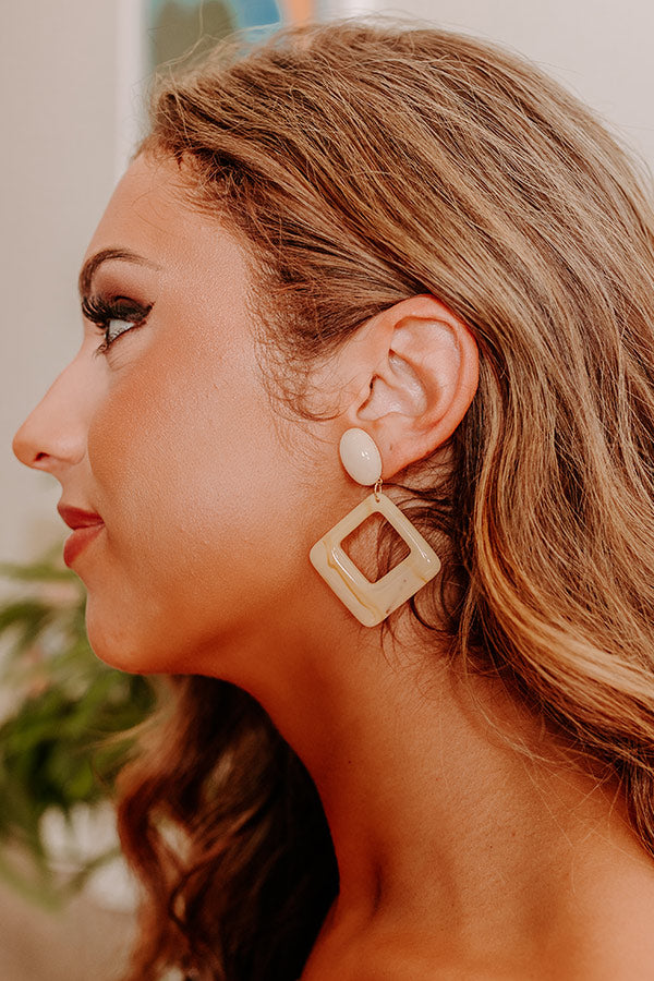 The perfect outfit completer, our pretty 'Sweet Stolen Moments Earrings' feature cream colored resin studs and dangling resin diamond shaped hoop!