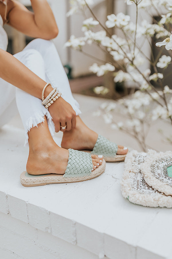 There is no better shoe to slip on and go with than our stylish pear colored 'Amias' sandal featuring a wide faux leather woven over-the-foot strap, a rounded open toe, a flat sole, and a lightweight slip-on silhouette! This sandal runs more true to size.