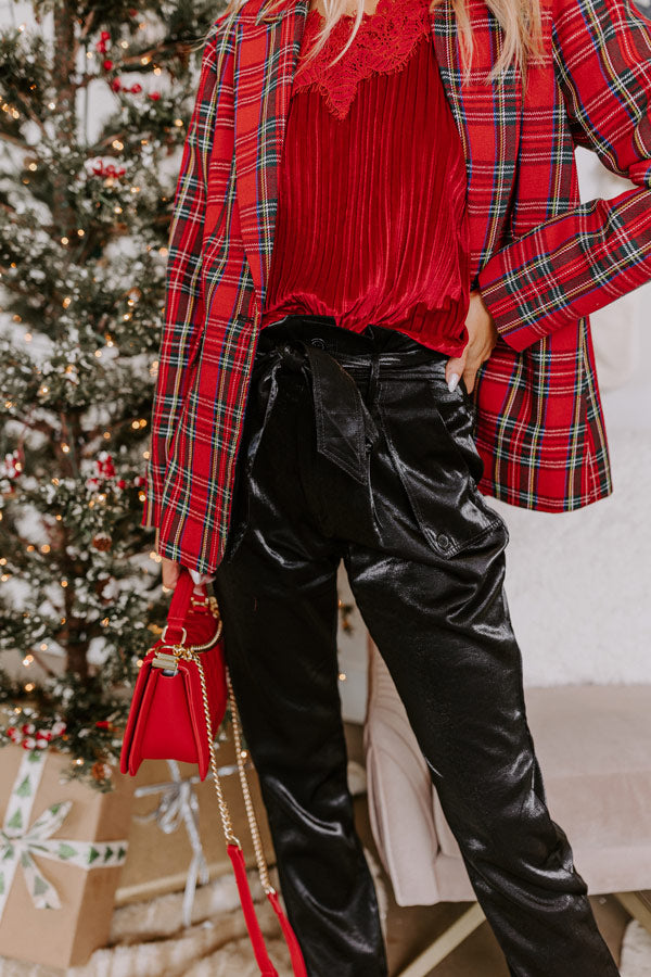 Elevate your office look with 'The Dash' high waist satin trousers! These shiny chic pants feature black colored satin material, button/zip closure, unique pleated waistline with belt loops and tie on belt, two functional side pockets with flap button feature, and a flattering relaxed fit that fall into straight ankle-length hemlines.