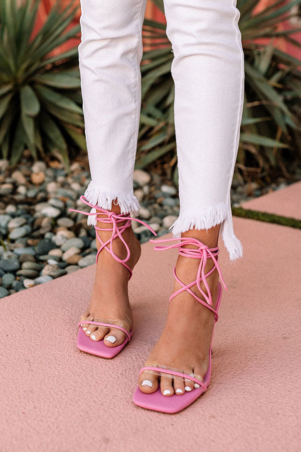 Make a flirty statement with our gorgeous pink 'Esley' heel featuring a square open toe, a 4.5-inch heel, a clear over-the foot strap, and a lightweight lace-up silhouette! This heel runs more true to size.