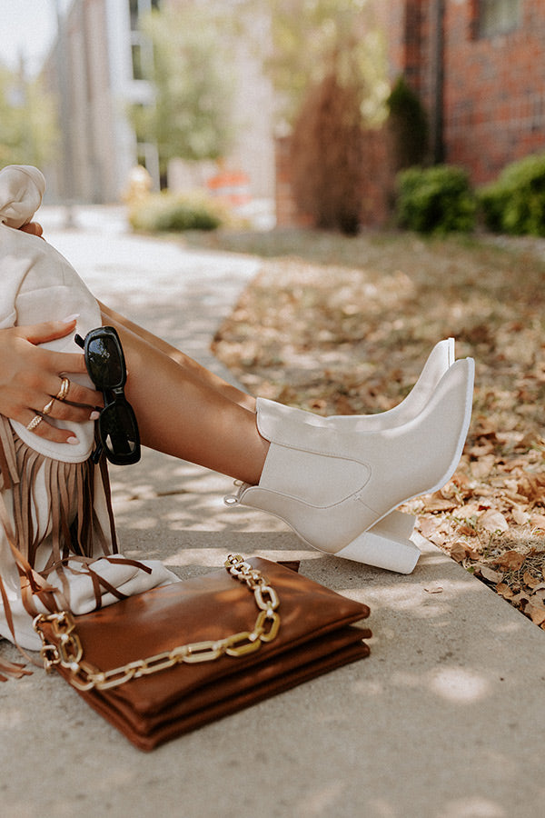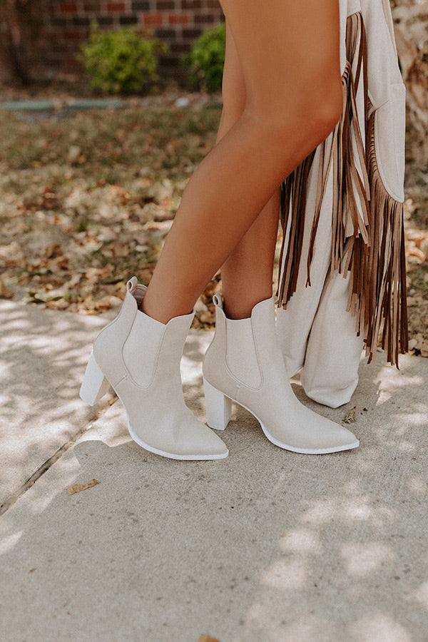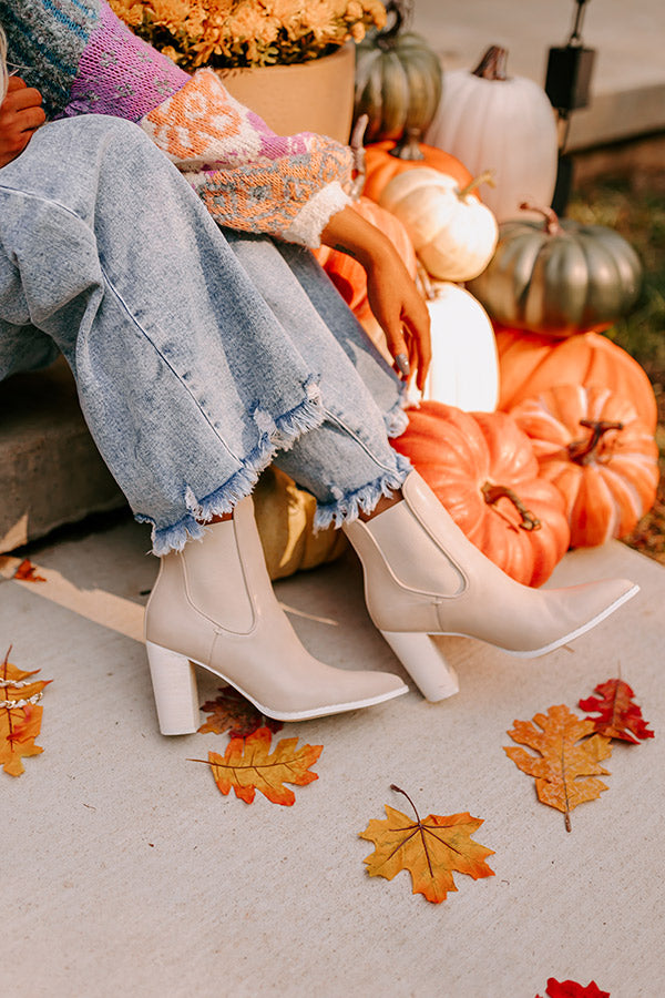 Complete your OOTD in the best way with our trendy stone colored 'Navarre' boot featuring sleek faux leather material with elastic panels on the side, a pointed closed toe, a 3.5-inch block heel, and a chic above the ankle silhouette! This boot runs more true to size.