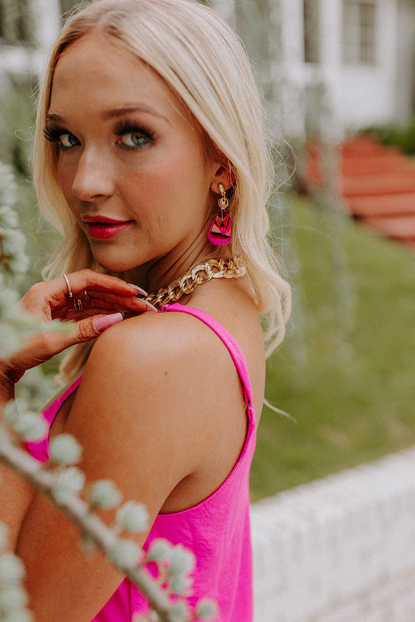 Life's a party, so accessorize like it with these fun earrings featuring gold studs with dangling hot pink feathers!