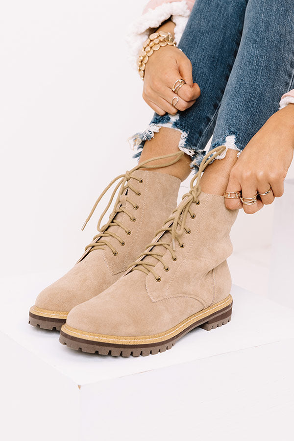 Step up your winter shoe style game with our trendy neutral hued 'Shane' boot featuring faux suede material, rounded closed toes, a flat grip sole, and a lightweight lace-up ankle high silhouette! This boot runs more true to size.