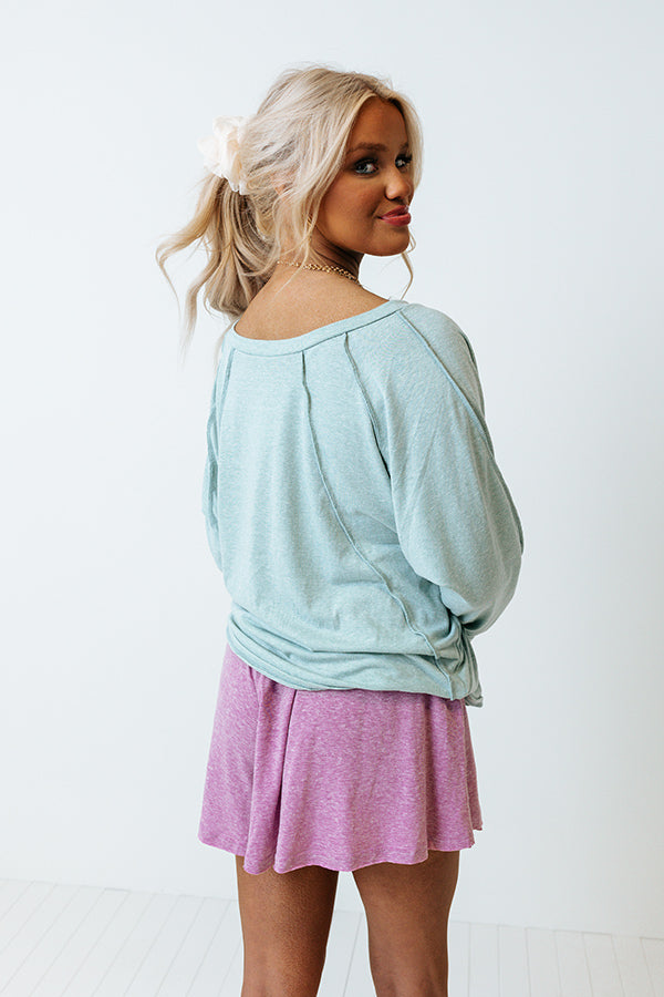 Keep casual in our cute mint hued 'This Must Be The Place Shift Top' featuring soft lightweight material, a rounded neckline, long loose sleeves, exposed accent seams, and a slouched silhouette that falls into a straight hemline! on products