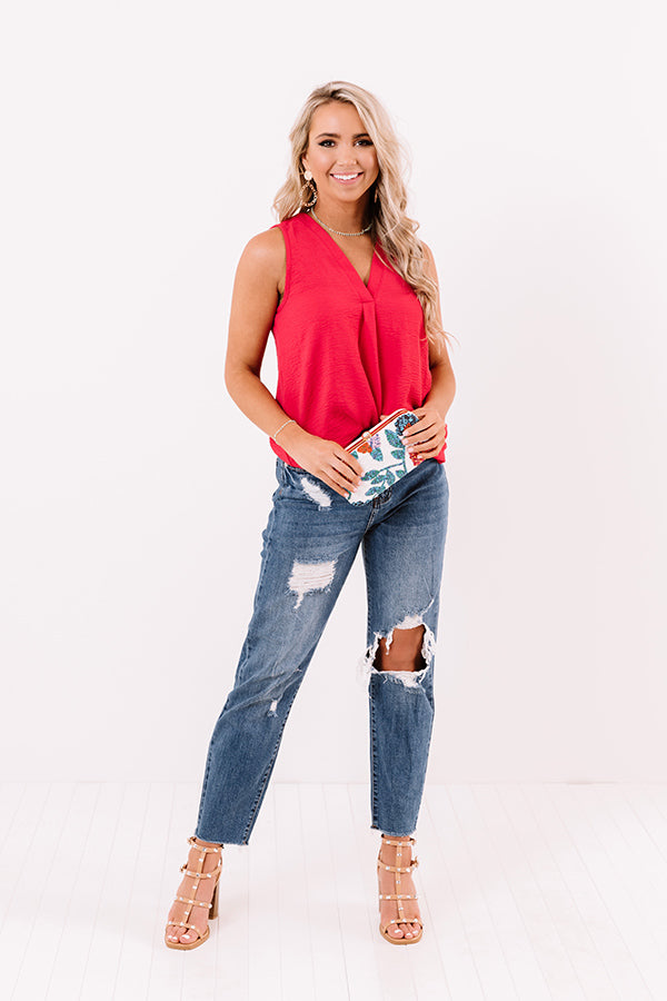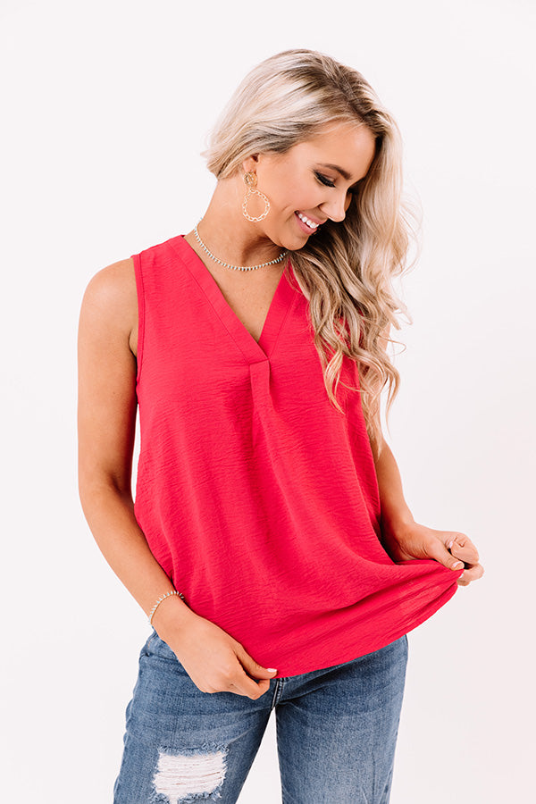 This raspberry colored shift tank features an uneven hem and a v-neck making this top the perfect breezy summer piece! Style with some frayed hem skinny jeans, a metallic clutch, and simple hoop earrings and you'll have the ideal outfit for those moonlight hangouts under the boardwalk!