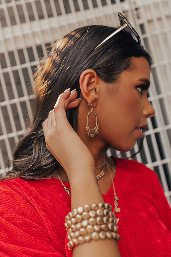 Our darling 'Vino In Hand Earrings' feature small gold plate studs and dangling gold oval hoops with small gold charms!