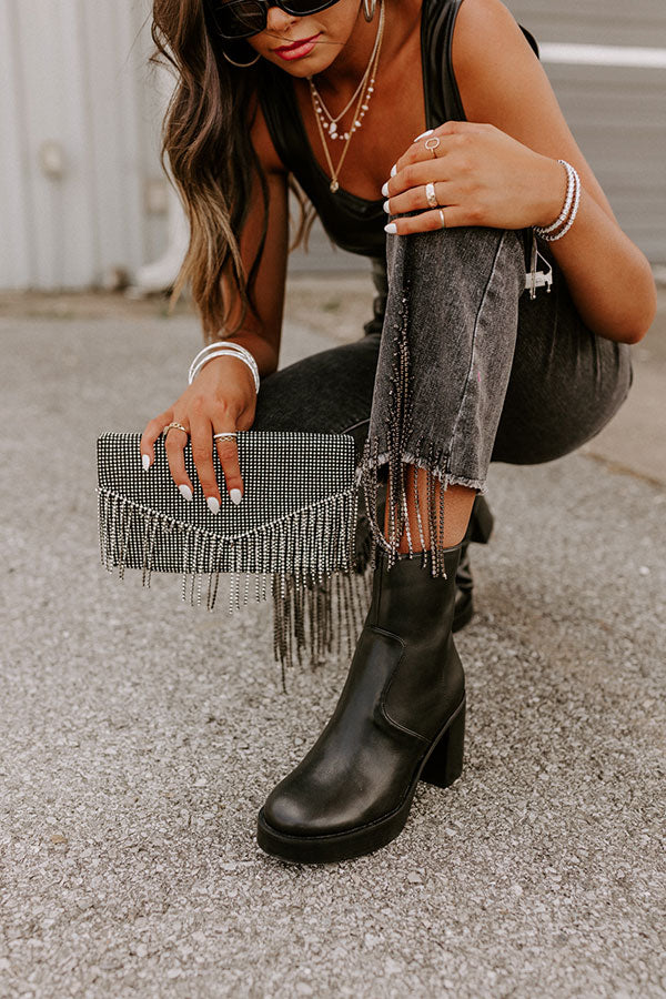 VIP Party Rhinestone Clutch In Black