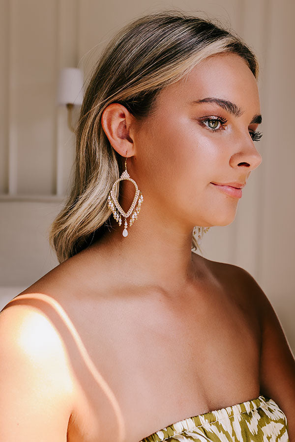 - Beaded drop style earrings with dangling shimmering beads and gold accents
