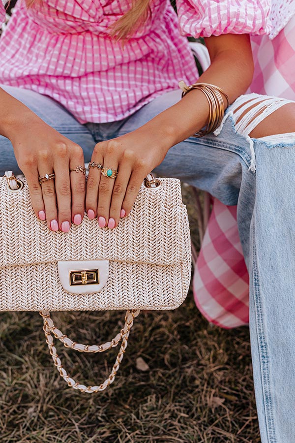 Upgrade your weekend jewelry style with this pretty gold ring set featuring five unique rings! Sizes range from 5-6 1/2.